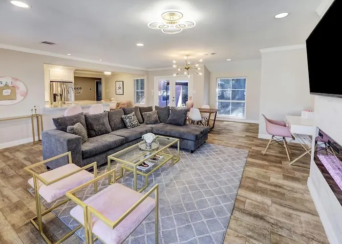 Set in a serene enclave, the Jasper Abode - 10 Mins To Galleria - Peaceful is a sanctuary for travelers seeking comfort and tranquility. This inviting retreat is just a 30-minute drive from the vibrant Ensemble/HCC area, ensuring that guests have easy access to the pulse of the city. Located 40 km from the William P. Hobby Airport, the Jasper Abode serves as a convenient and peaceful haven amidst the hustle and bustle.